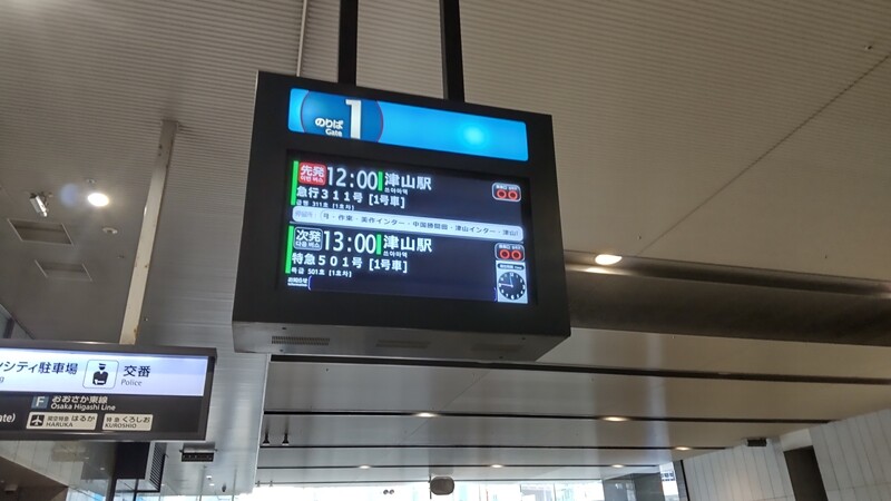 万全を期すため、行きは始発のJR大阪高速バス乗り場から乗ることにし、事前にネットで切符を購入。