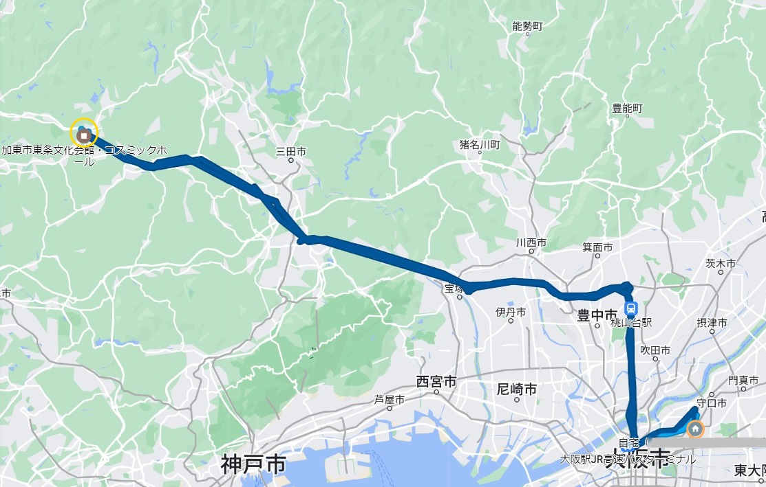 行きとは違い、西宮以降なかなか進まず、宝塚ICを過ぎてからは一般道も渋滞。