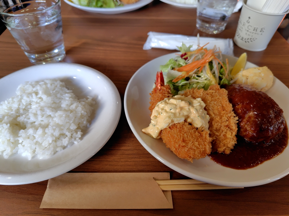 エビフライの衣はサクサク、中はプリプリ、白身魚もふわふわ。