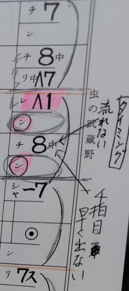 お稽古メモ5:八分音符が続くので慌ただしくなりやすいが、フレーズの頭の音をしっかりと弾くこと。慌ててバチを跳ね上げて弾かず、一瞬でも皮につけるイメージで。