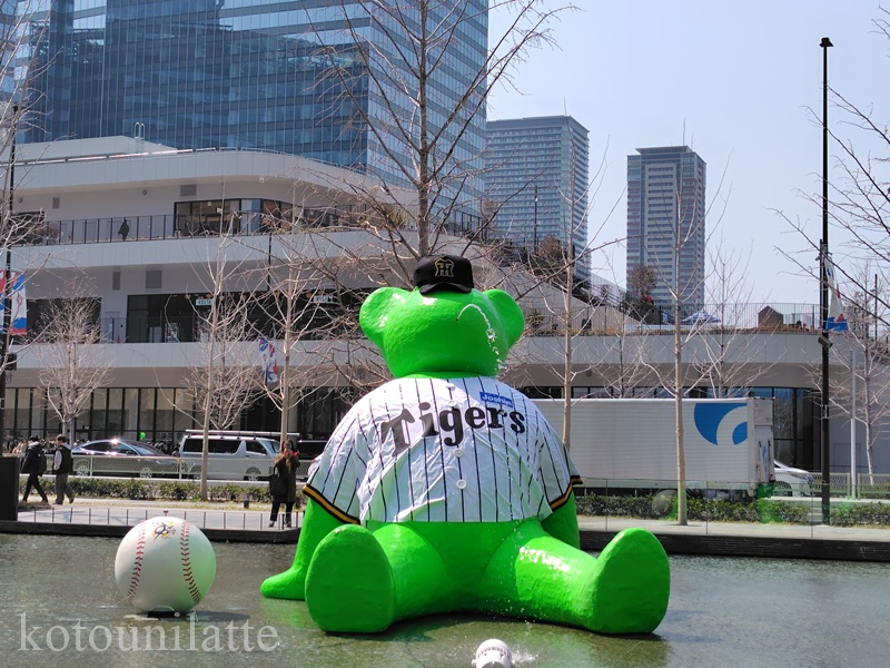 うめきた広場の噴水のクマさんも、タイガースのユニフォームを着て応援していました!