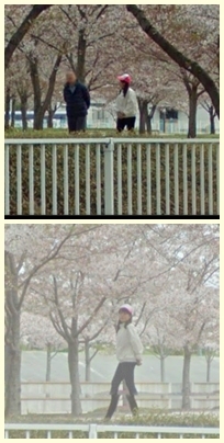 その時、偶然Googleマップの撮影車が広場の前を通りかかって、なんとGoogleストリートビューに写りました!当時、おじいさんとお話ししているところや歩いているところを画面キャプチャして保存していたんですが、(よく年配の方から話しかけられます)