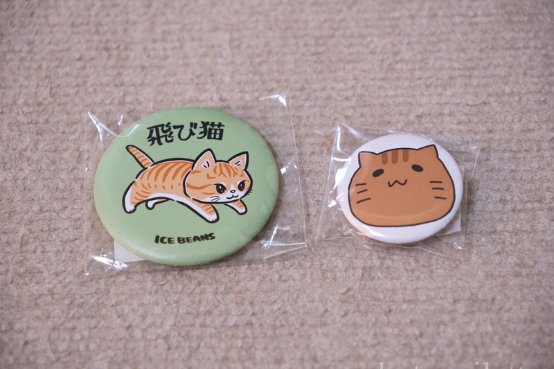 「猫も杓子も。」さんのブースに並んでいた、茶トラ猫さんの缶バッチ。