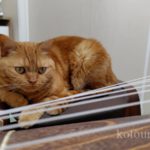 ラテ君が、ちゃっかり楽譜の上に座りました。