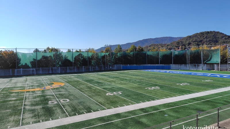 途中、アメフトのグラウンドも発見しました。