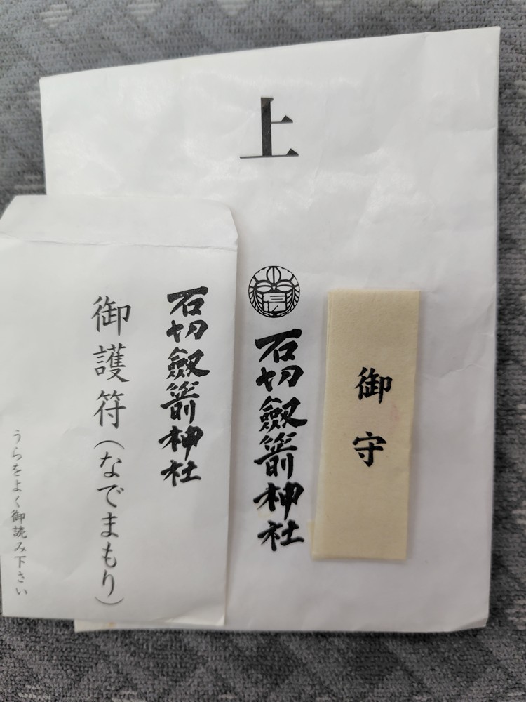 2024年9月に入院・手術をした時、のりP先輩から「石切神社のなで守り」をいただきました。