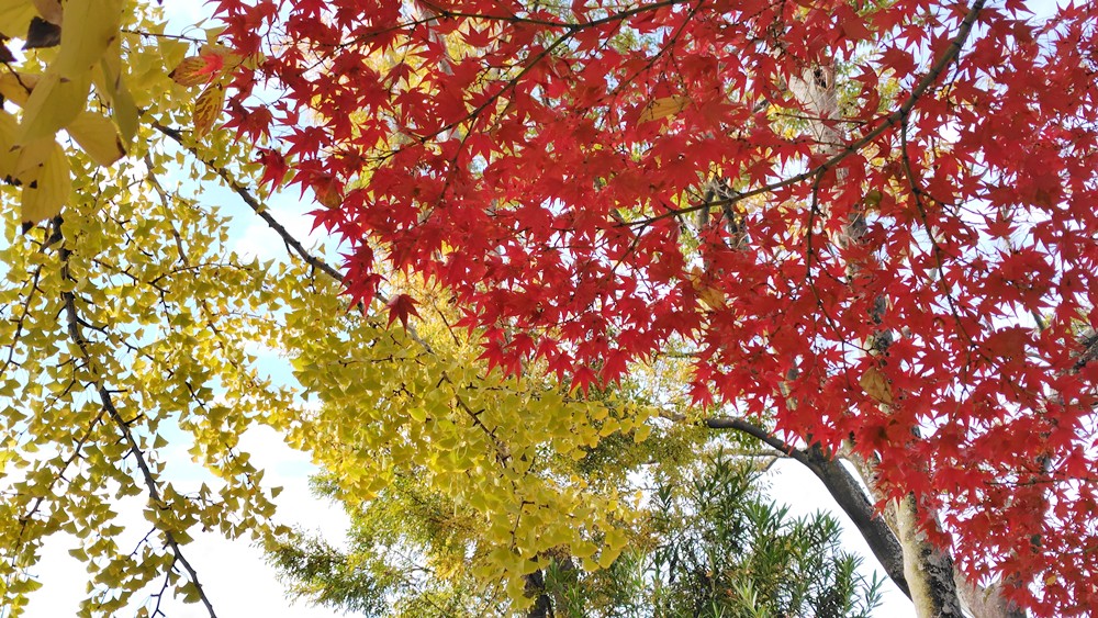 そのあと、まだ行っていない庭園のほうへ足を伸ばすと、紅葉やイチョウがちょうど見頃で、ゆったりと散策することができました。
